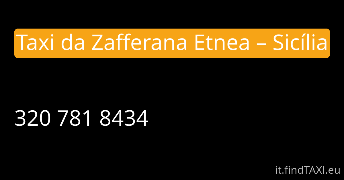 Con Taxi da Zafferana Etnea si muove in città e nei dintorni in modo comodo e senza stress. Ideale per i Suoi spostamenti quotidiani a Zafferana Etnea, per raggiungere negozi, uffici, ristoranti o appuntamenti importanti senza pensieri.
